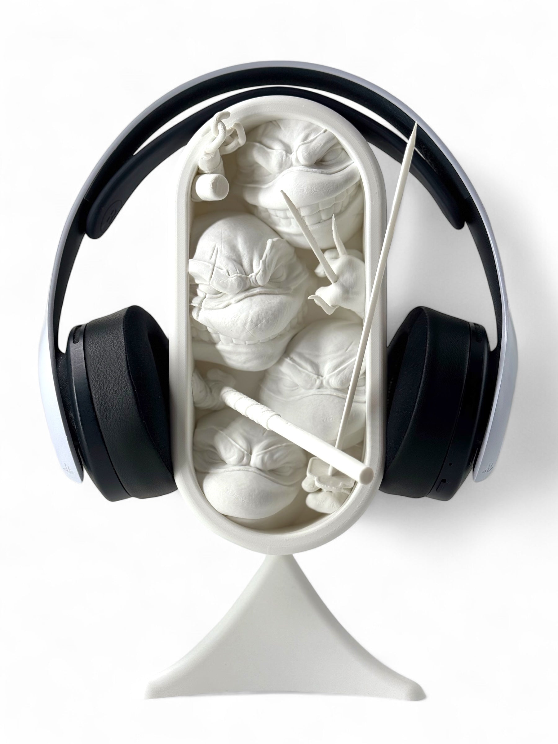 Crafted with expressive faces and signature weapons, this piece captures the attitude and energy of the TMNT squad in action. It’s not just a headphone stand — it’s a throwback centerpiece built for fans who grew up with the sewers and the streets.