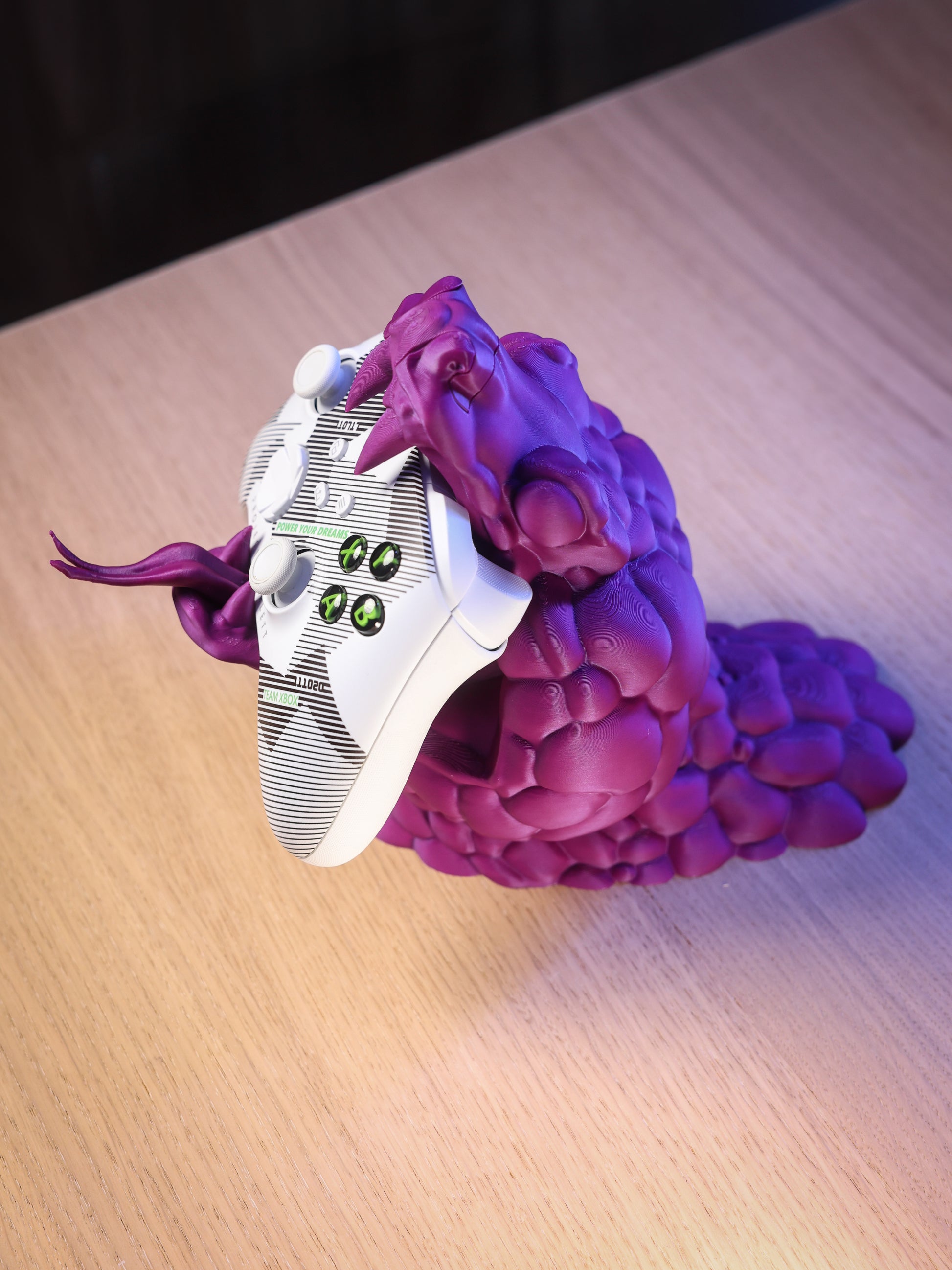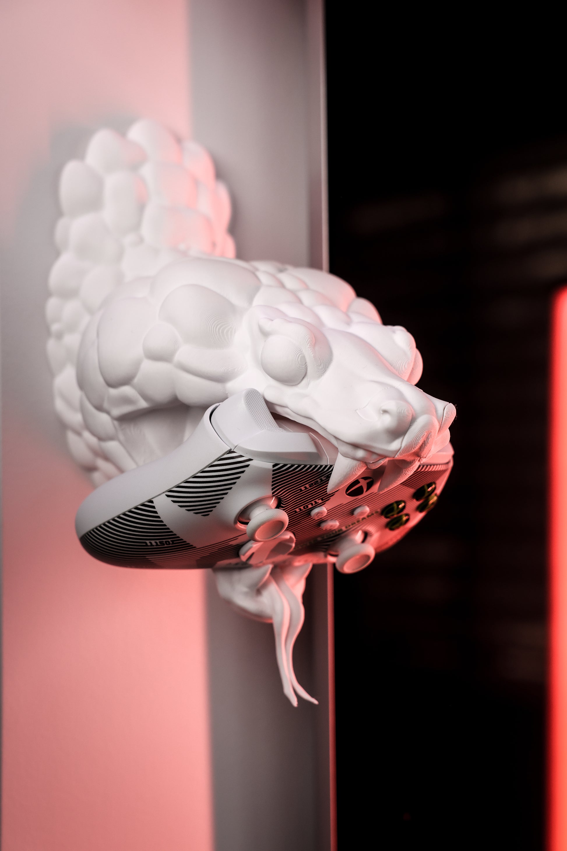Unleash the beast in your setup with Venom Grip™, the ultimate wall-mounted controller holder that merges style, attitude, and function. Sculpted with a striking serpent design and metallic green finish, this stand doesn’t just hold your controller – it owns it.