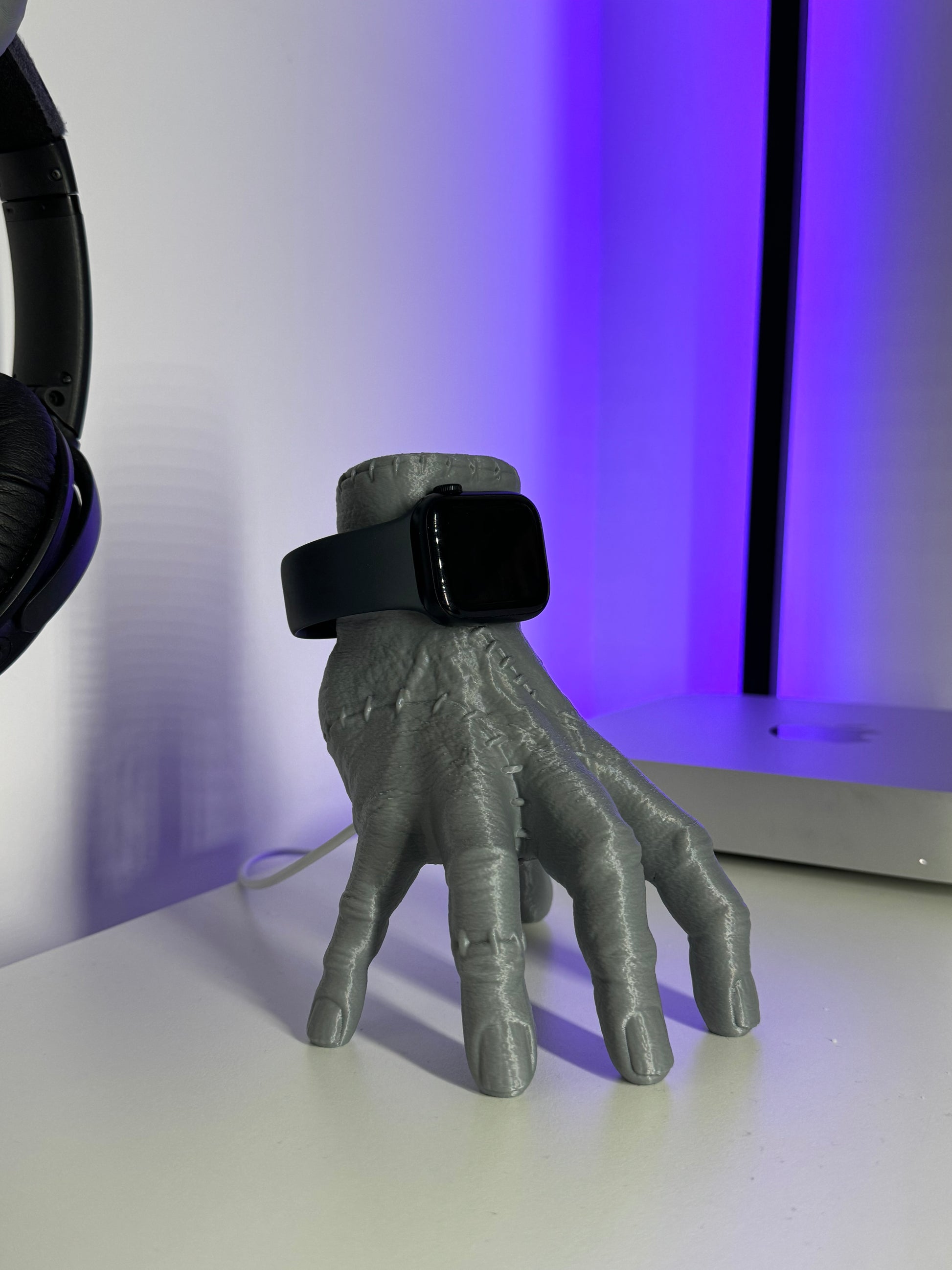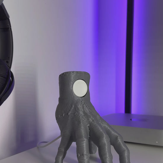 in spooky style with our 'The Thing' Apple Watch charger! \ Inspired by Wednesday and The Addams Family, it's the perfect blend of eerie and functional