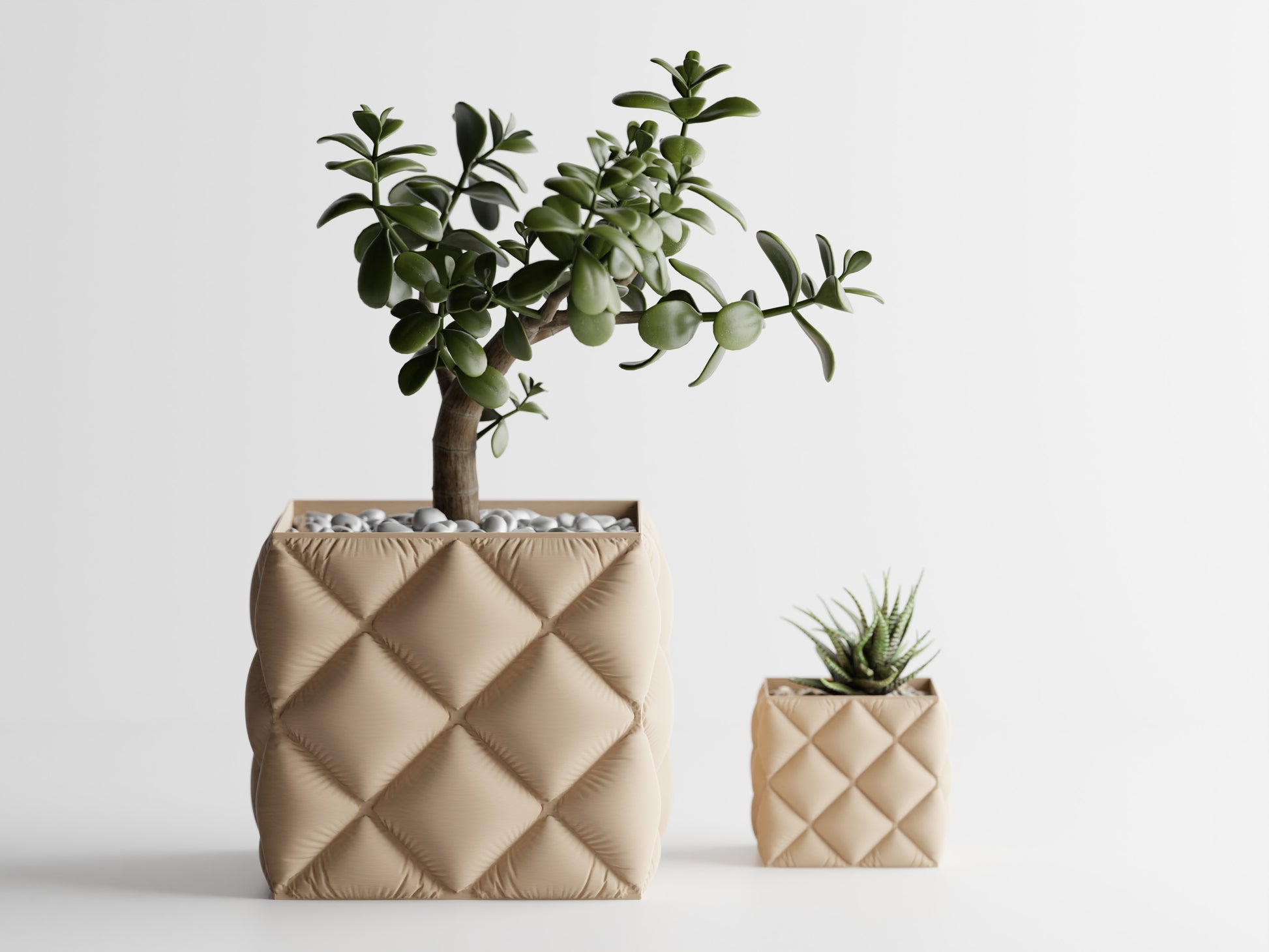 A refined planter that blends plush elegance with structured geometry. Its quilted surface creates a soft, padded look, while the crisp square form adds a modern architectural edge. The diamond-tufted pattern offers depth and texture, making it a standout piece for both plants and decorative displays. Perfect for interiors that seek a balance of comfort and sophistication.